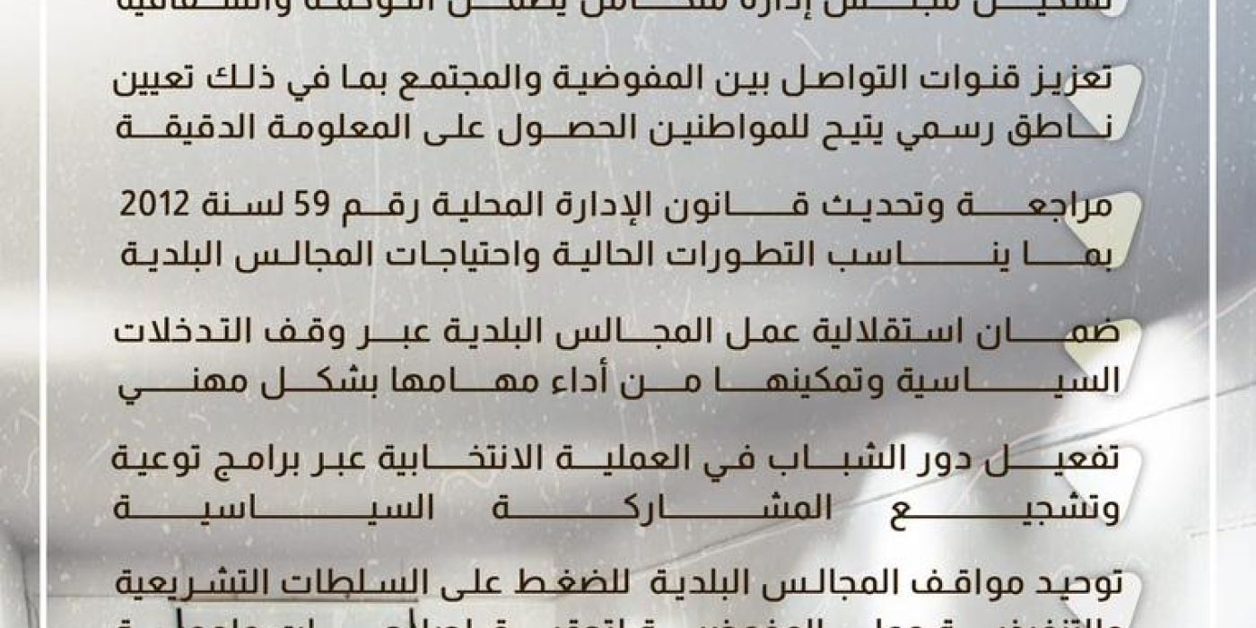 - ضمان استقلالية عمل المجالس البلدية عبر وقف التدخلات السياسية وتمكينها من أداء مهامها بشكل مهني.
