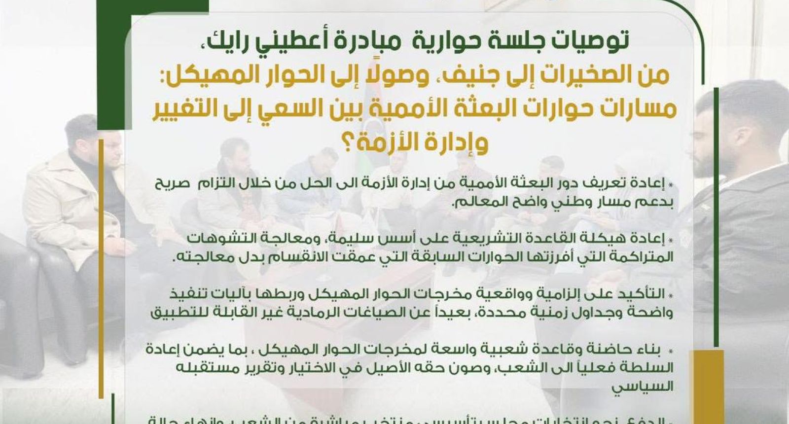 اختتمت الجلسة الحوارية ضمن مبادرة اعطيني رايك بجملة من التوصيات التي عكست ادراكاً ووعياً لعمق الأزمة السياسية في ليبيا، وقدمت تصوراً عملياً…